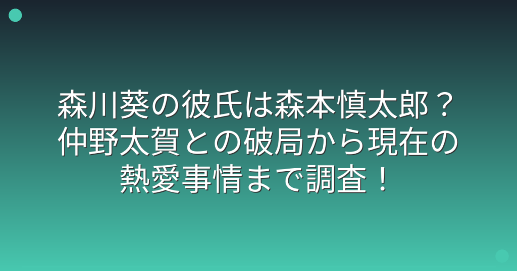 女優として人気急上昇中の森川葵さんに彼氏がいるのか、ファンの間で大きな話題になっていますね。 過去には俳優の仲野太賀さんとの交際が報じられましたが、現在はSixTONESの森本慎太郎さんとの熱愛が週刊文春で報道され、SNSでは「匂わせ炎上」などさま...