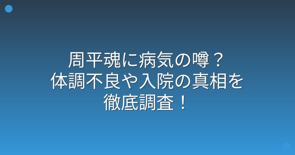 周平魂に病気の噂?体調不良や入院の真相を徹底調査!