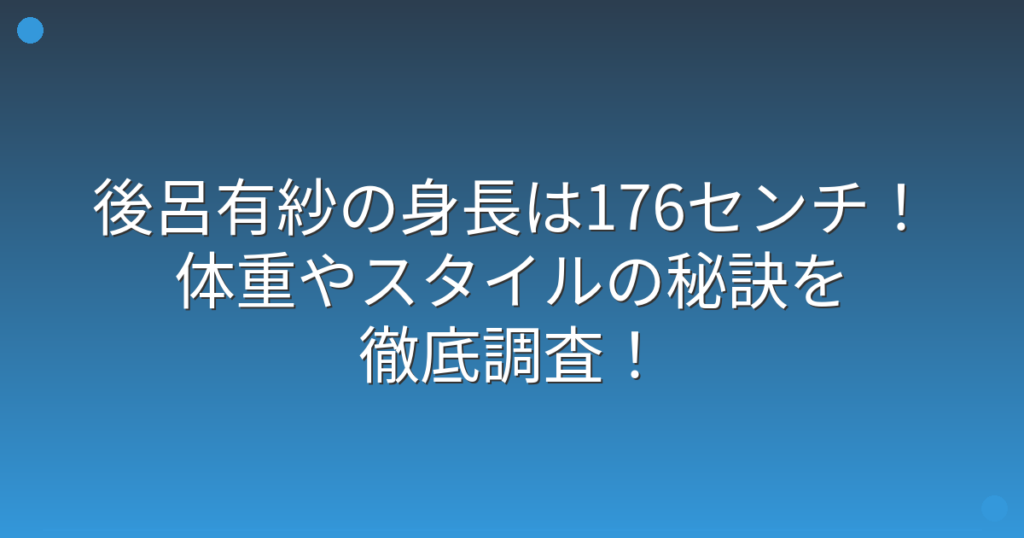 俳優として活躍する後呂有紗さんの身長が話題になっていますね。 モデルのようなスタイルの良さが注目されている後呂有紗さんですが、実際の身長はどのくらいなのでしょうか。 そこで今回は、後呂有紗さんの身長や体重、スタイルの秘訣について詳しく見て... -