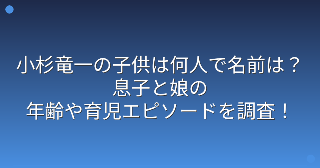 小杉竜一の子供は何人で名前は?息子と娘の年齢や育児エピソードを調査!
