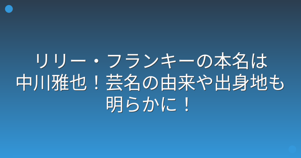 リリー・フランキーの本名は中川雅也!芸名の由来や出身地も明らかに!