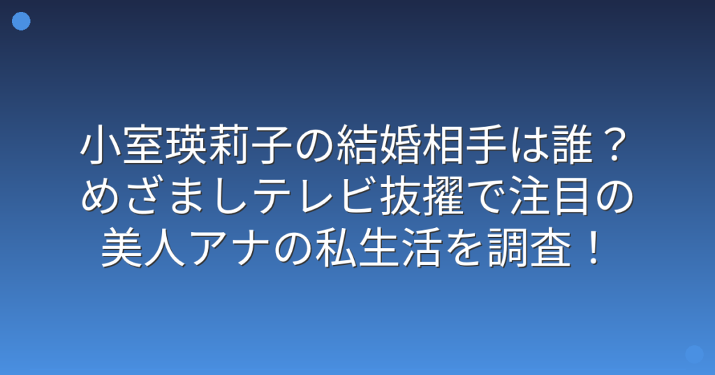 小室瑛莉子の結婚相手は誰?めざましテレビ抜擢で注目の美人アナの私生活を調査!