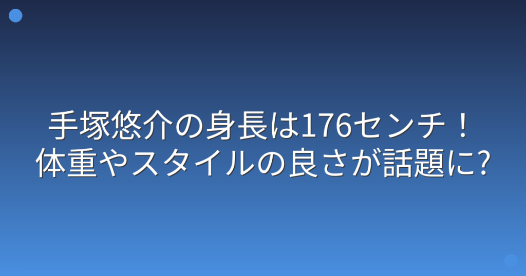 俳優として活躍する手塚悠介さんのスタイルの良さが話題になっていますね。 特に身長や体型について気になっている方も多いのではないでしょうか。 そこで今回は、手塚悠介さんの身長や体重、そしてスタイルについて詳しく見ていきましょう! 手塚悠介の身... -