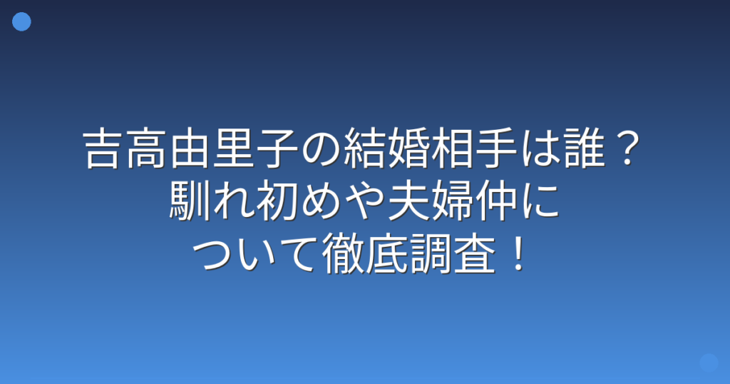 女優の吉高由里子さんといえば、数々のドラマや映画で活躍する人気女優ですよね。 そんな吉高由里子さんの結婚について、ファンの間では大きな話題になっています。 そこで今回は、吉高由里子さんの結婚相手や馴れ初め、夫婦仲について詳しく見ていきまし... -