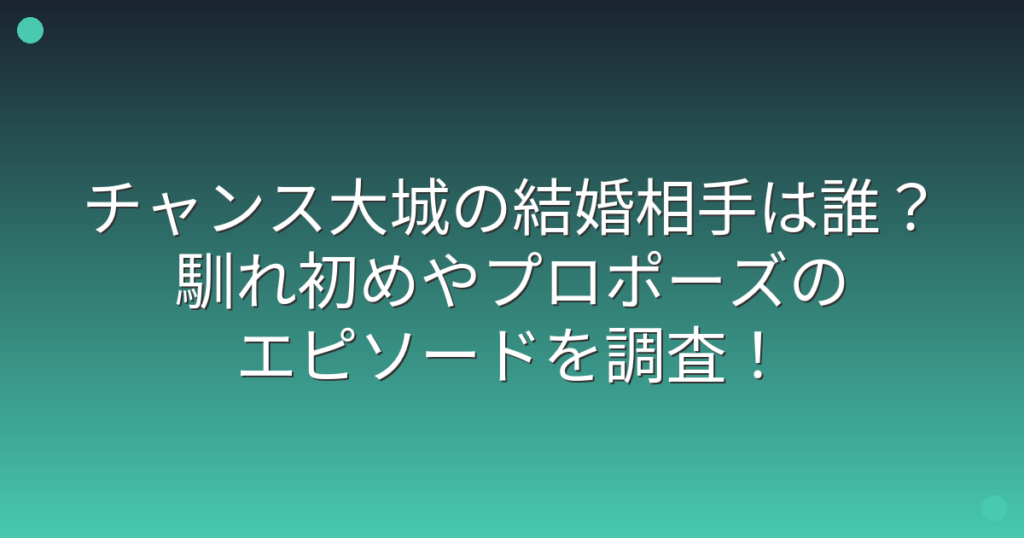 チャンス大城の結婚相手は誰?馴れ初めやプロポーズのエピソードを調査!