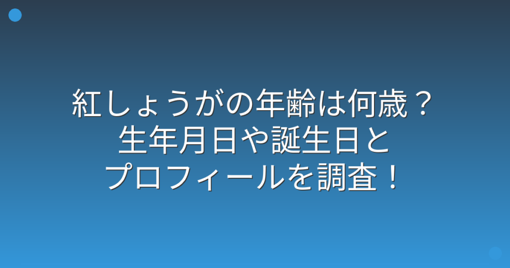 お笑いコンビ「紅しょうが」の年齢について、ファンの間で話題になっていますね。 テレビやライブで活躍する二人ですが、実際の年齢や生年月日が気になっている方も多いのではないでしょうか。 そこで今回は、紅しょうがのメンバーの年齢や生年月日、プロ... -