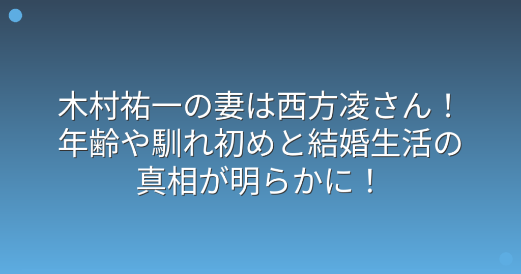 木村祐一の妻は西方凌さん!年齢や馴れ初めと結婚生活の真相が明らかに!
