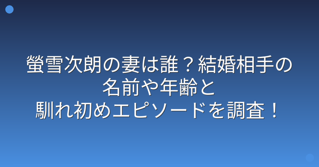 螢雪次朗の妻は誰?結婚相手の名前や年齢と馴れ初めエピソードを調査!