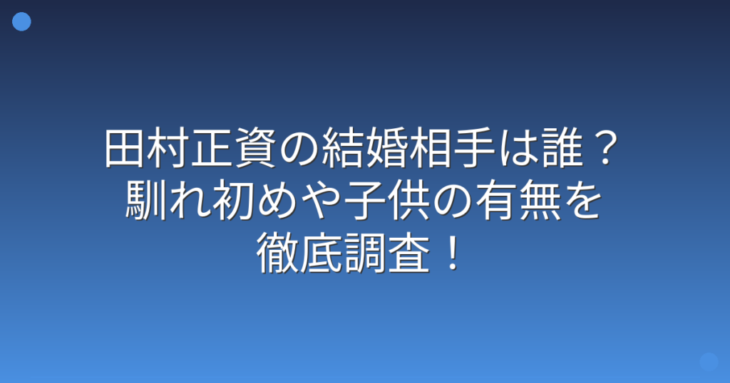 田村正資の結婚相手は誰?馴れ初めや子供の有無を徹底調査!