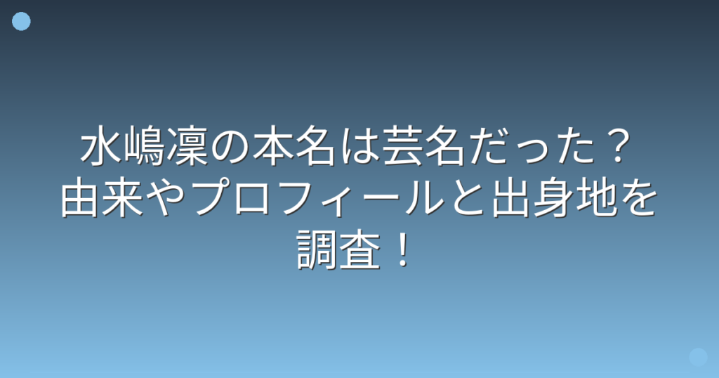 水嶋凜の本名は芸名だった?由来やプロフィールと出身地を調査!