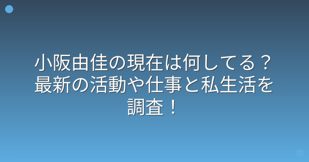 小阪由佳の現在は何してる?最新の活動や仕事と私生活を調査!