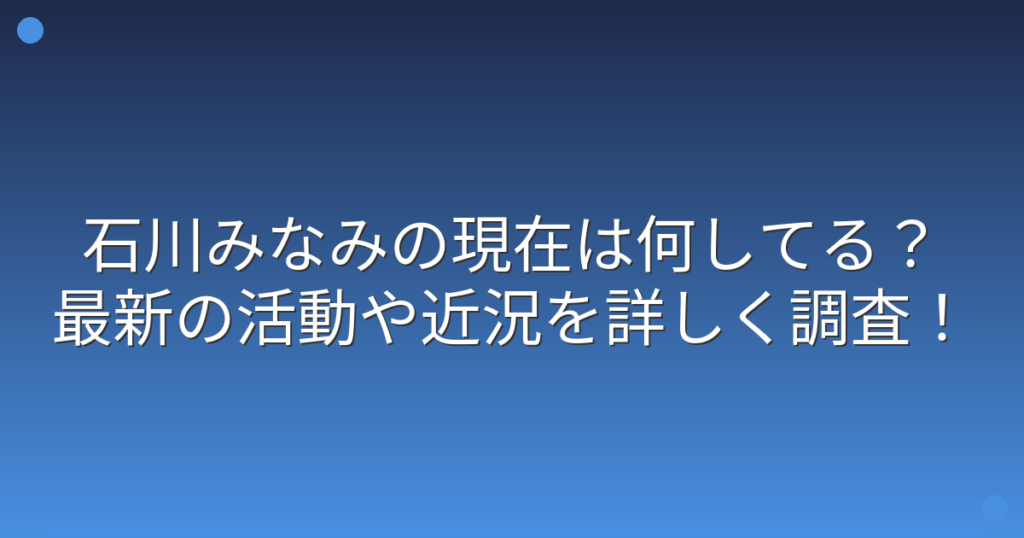 石川みなみの現在は何してる?最新の活動や近況を詳しく調査!