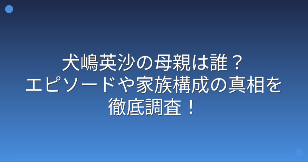 犬嶋英沙の母親は誰?エピソードや家族構成の真相を徹底調査!