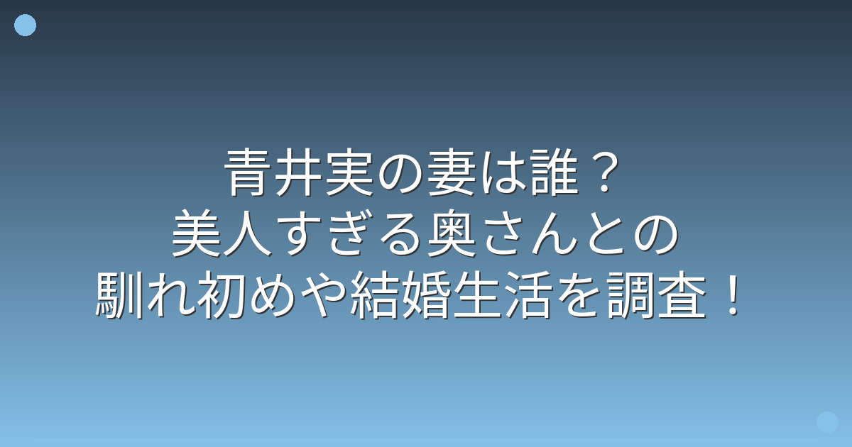 青井実さんと妻の馴れ初めについては、公式な発表はされていませんが、いくつかの情報があります。