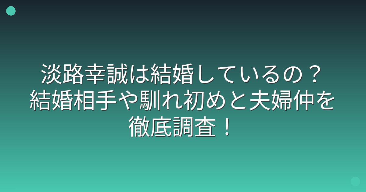 淡路幸誠さんの結婚について気になっている方が多いようですね。
