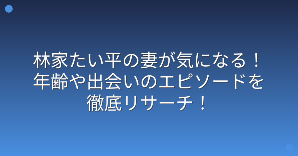 落語家として活躍する林家たい平さんの妻について、最近ネット上で話題になっていますね。 たい平さんは明るいキャラクターで人気者ですが、プライベートについてはあまり知られていません。 そこで今回は、林家たい平さんの妻について詳しく見ていきまし... -