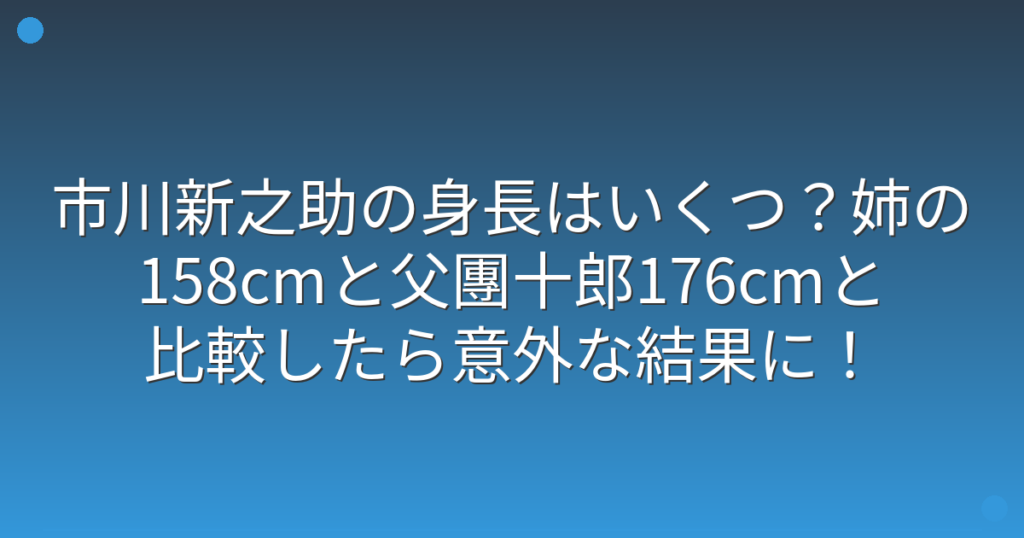 歌舞伎界の期待の星として注目を集めている市川新之助さんについて、最近では身長に関する話題も増えてきていますね。 特に、姉の市川ぼたんさんや父の市川團十郎さんとの身長差が話題となっています。 そこで今回は、市川新之助さんの身長について、家族... -