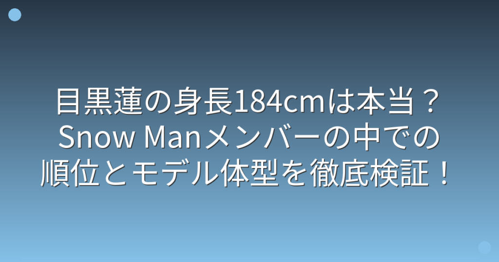 目黒蓮の身長184cmは本当?Snow Manメンバーの中での順位とモデル体型を徹底検証!