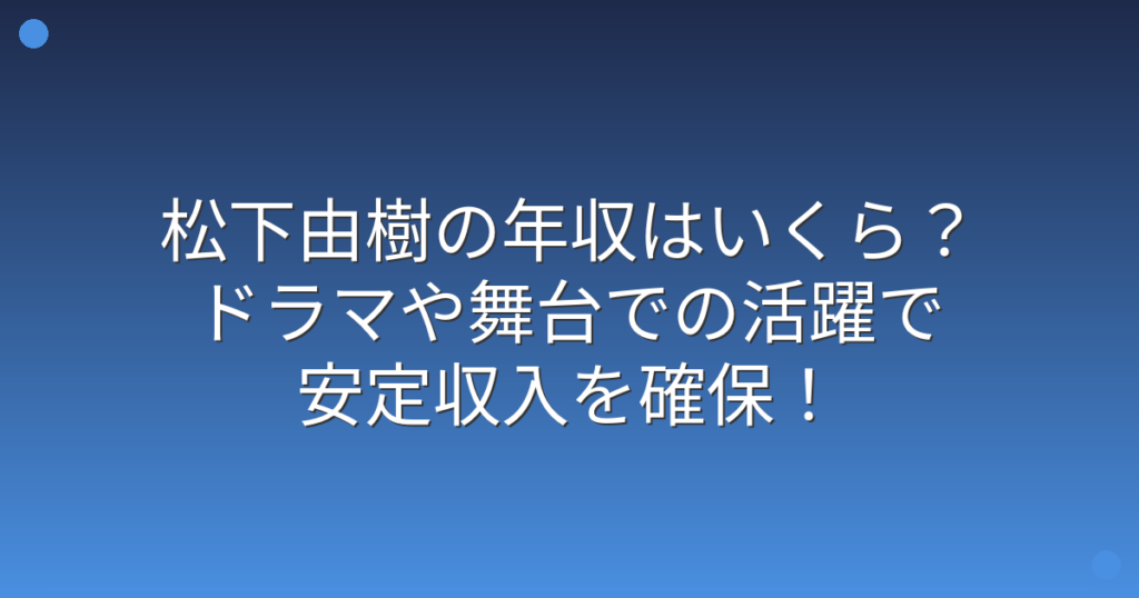 松下由樹の年収はいくら?ドラマや舞台での活躍で安定収入を確保!