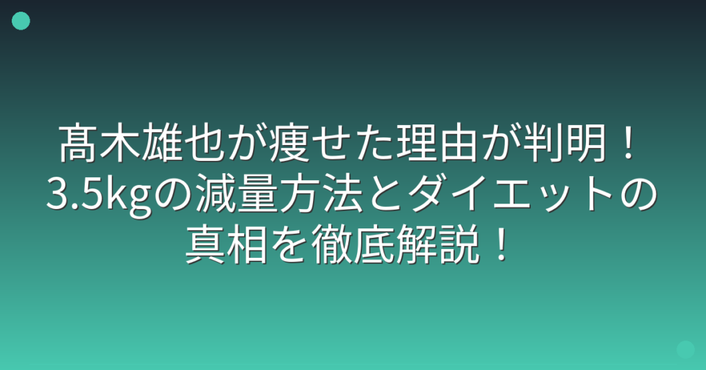 髙木雄也が痩せた理由が判明!3.5kgの減量方法とダイエットの真相を徹底解説!