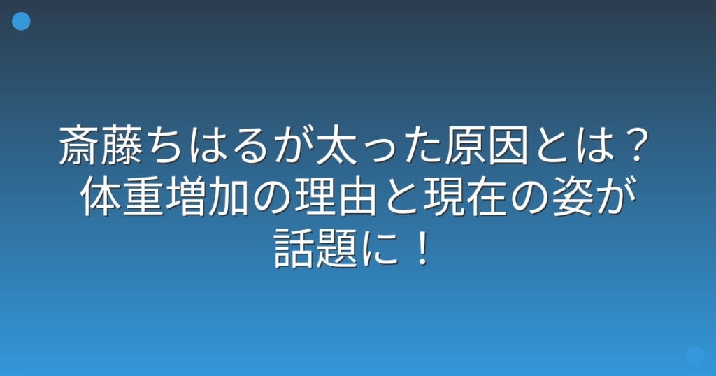 斎藤ちはるが太った原因とは?体重増加の理由と現在の姿が話題に!