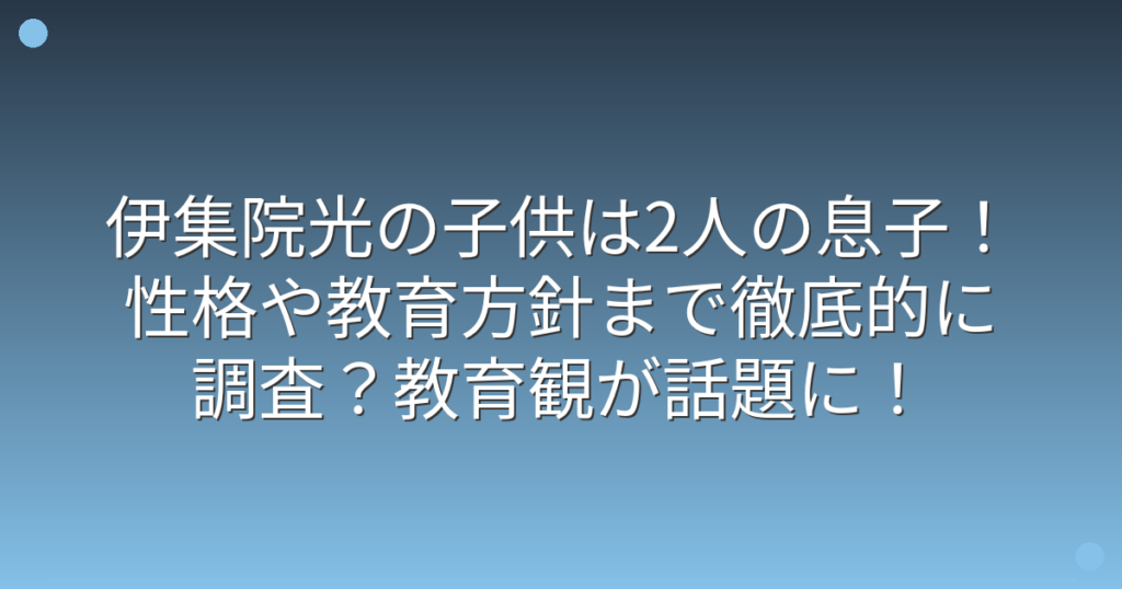 人気ラジオ番組「伊集院光とらじおと」でおなじみの伊集院光さんの家族について、最近注目が集まっています。 特に伊集院さんの子育てや教育方針について、その独特な考え方が話題を呼んでいます。 そこで今回は、伊集院光さんの子供たちについて、詳しく... -