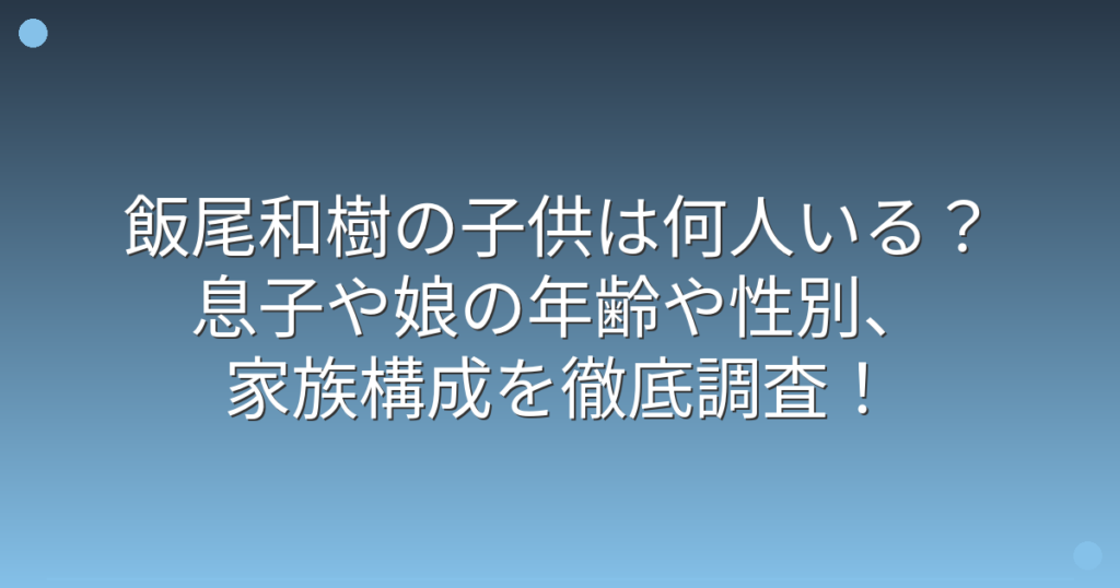 飯尾和樹の子供は何人いる?息子や娘の年齢や性別、家族構成を徹底調査!