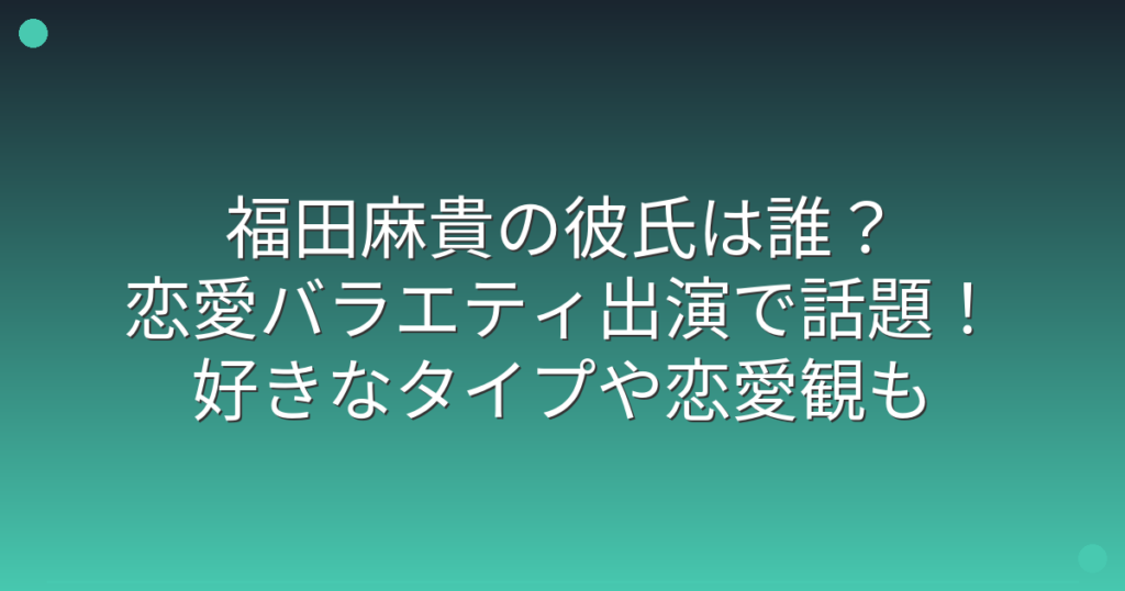 福田麻貴の彼氏は誰?恋愛バラエティ出演で話題!好きなタイプや恋愛観も徹底解説!