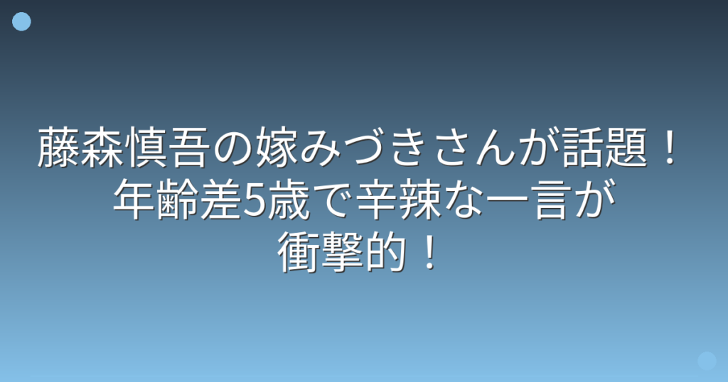 藤森慎吾の嫁みづきさんが話題!年齢差5歳で辛辣な一言が衝撃的!