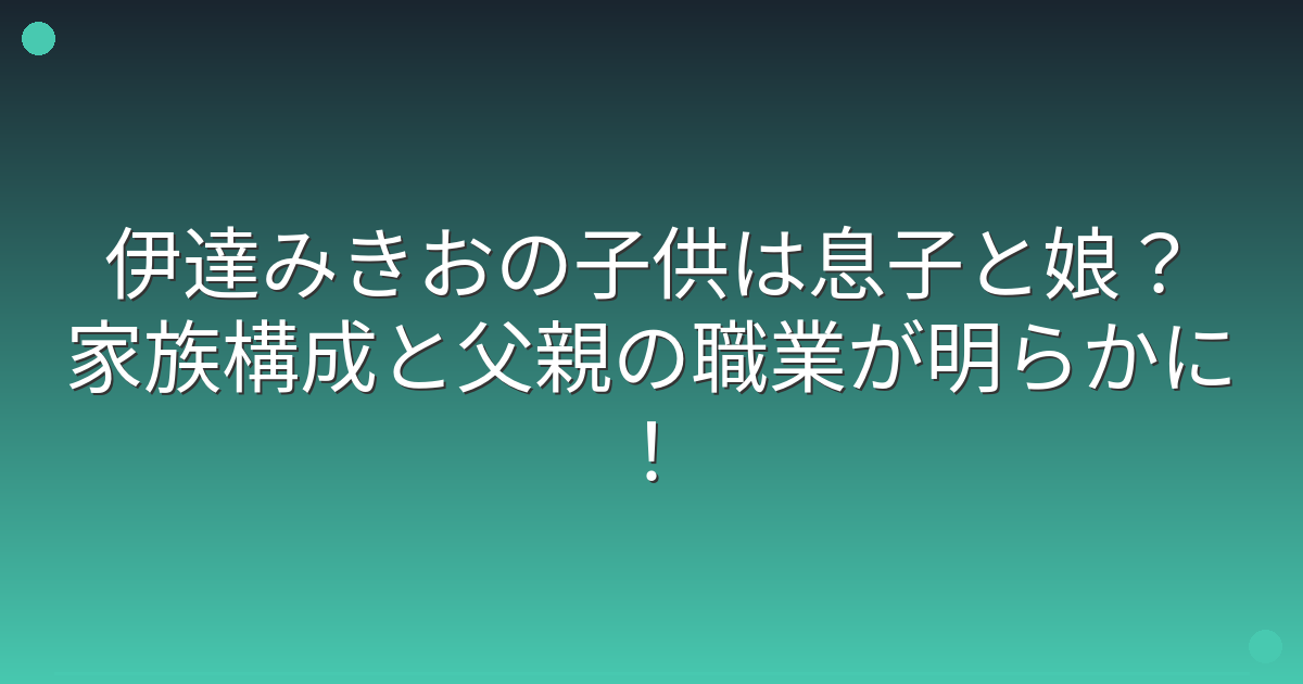 まず、多くの方が気になっている伊達みきおさんの子供の有無についてですが、実は公式に子供がいるという情報は一切公表されていません。