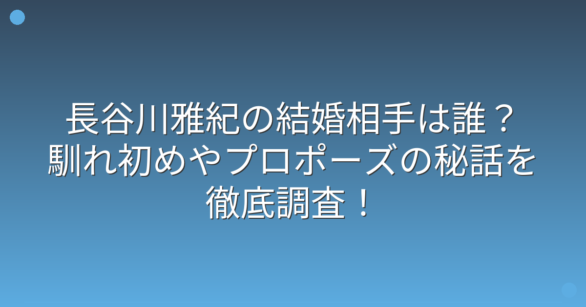 長谷川雅紀さんと奥様の馴れ初めについては、詳細な情報は公開されていません。