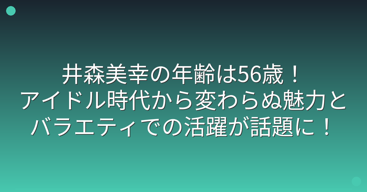 井森美幸の年齢は56歳!アイドル時代から変わらぬ魅力とバラエティでの活躍が話題に!