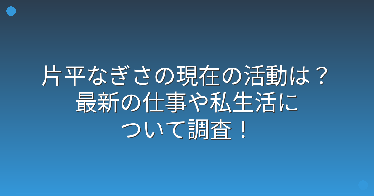 そこで今回は、片平なぎさんの現在の活動や最新の仕事、私生活について詳しく見ていきましょう!