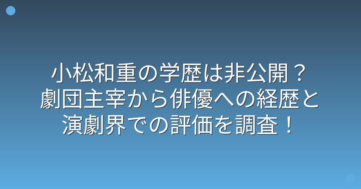 テレビ情報サイト「thetv.jp」のプロフィールページでは、小松和重さんの劇団結成や舞台出演歴が詳しく紹介されていますが、学歴については一切触れられていません。
