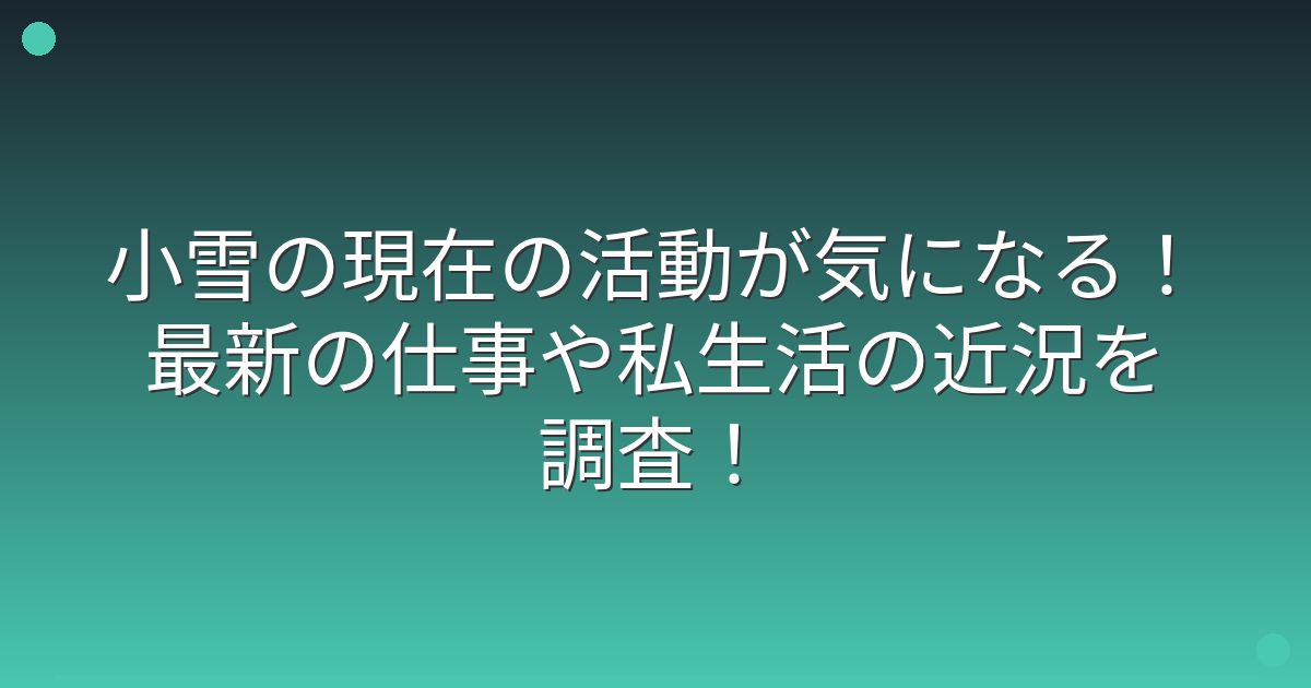 今回は、小雪さんの現在の活動や私生活の近況についてお伝えしてきました。
