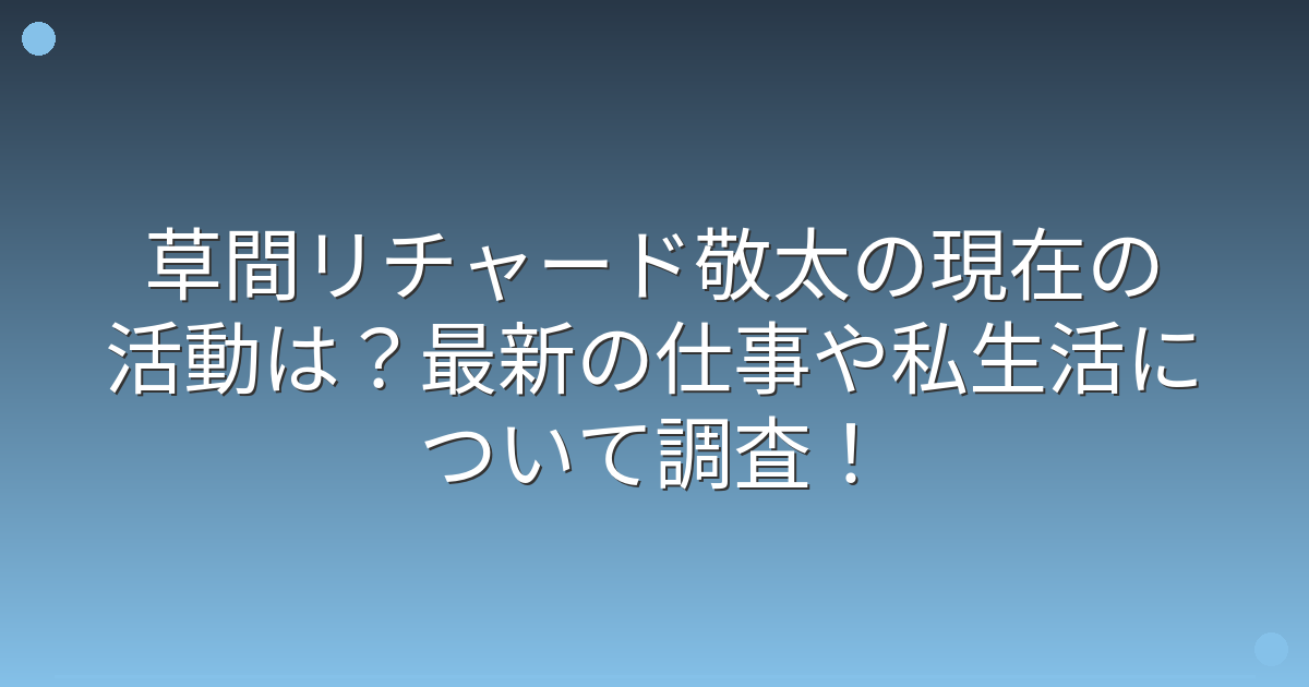 そこで今回は、草間リチャード敬太さんの現在の活動や仕事、私生活について詳しく見ていきましょう!