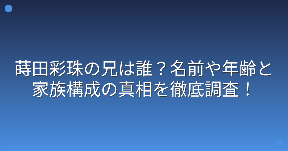 複数の報道によると、蒔田彩珠さんには兄がいることが明らかになっています。