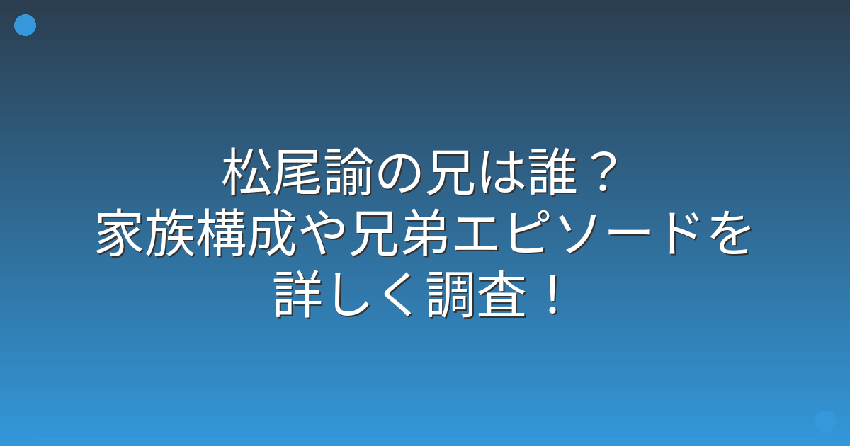 そこで今回は、松尾諭さんの兄について、家族構成や兄弟エピソードを詳しく見ていきましょう!