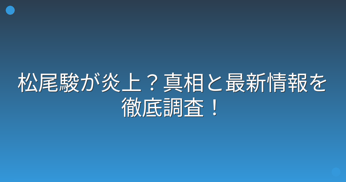 松尾駿さんが炎上しているという噂が、ファンの間で話題になっていますね。