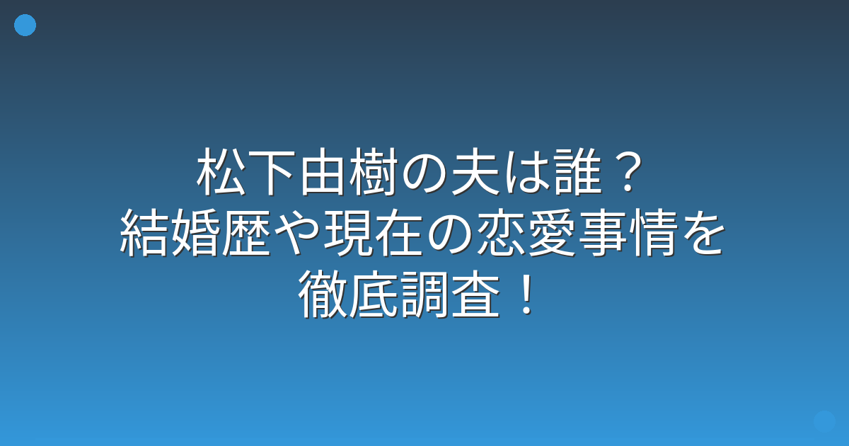松下由樹さんは現在も独身で夫はおらず、これまでに結婚歴もないことが分かりました。