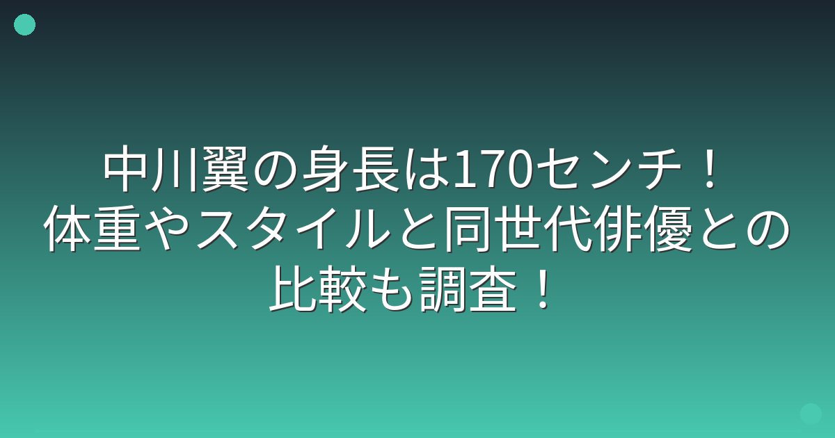 若手俳優として注目を集めている中川翼さんですが、身長やスタイルについて気になっている方も多いのではないでしょうか。