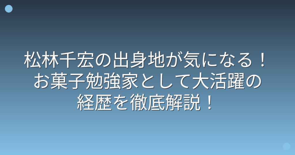 松林千宏の出身地が気になる!お菓子勉強家として大活躍の経歴を徹底解説!