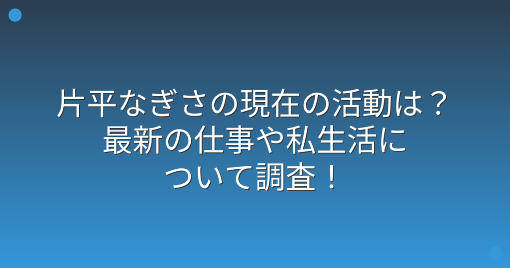 片平なぎさの現在の活動は?最新の仕事や私生活について調査!