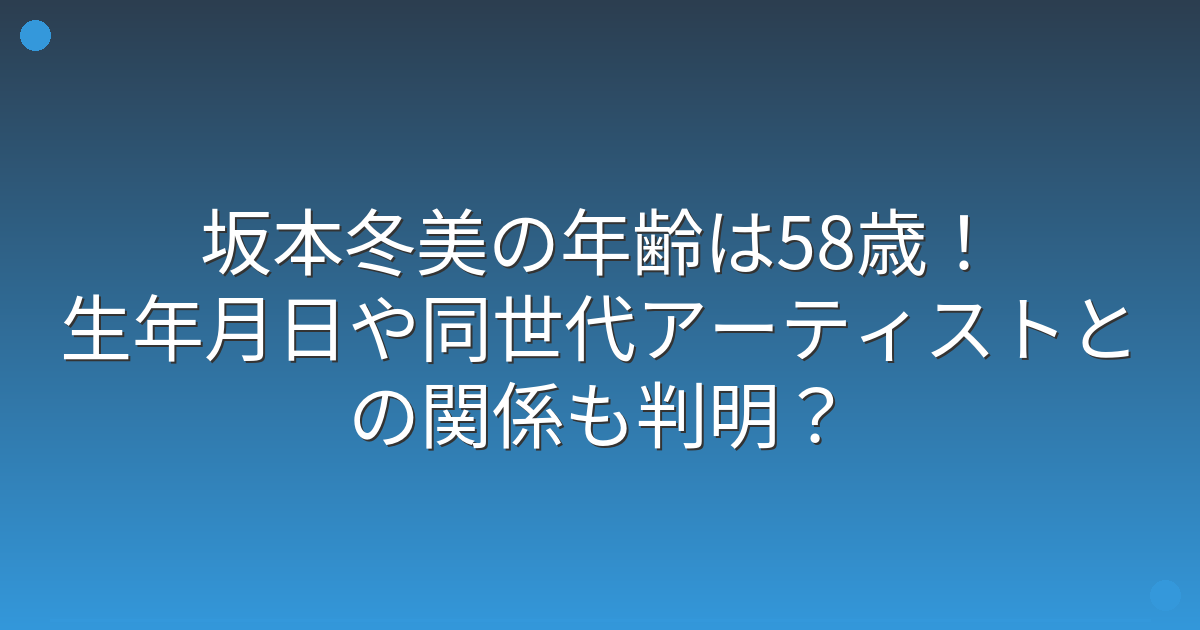 そこで今回は、坂本冬美さんの年齢や生年月日、同世代アーティストとの関係について詳しく見ていきましょう!