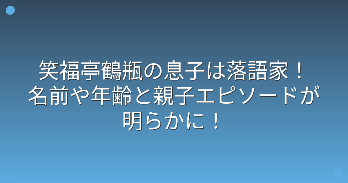 そこで今回は、笑福亭鶴瓶さんの息子さんの名前や年齢、親子エピソードについて詳しく見ていきましょう!