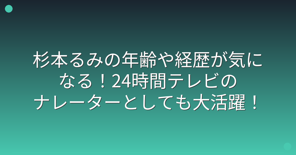 そこで今回は、杉本るみさんの年齢や経歴、ナレーターとしての活動について詳しく見ていきましょう!
