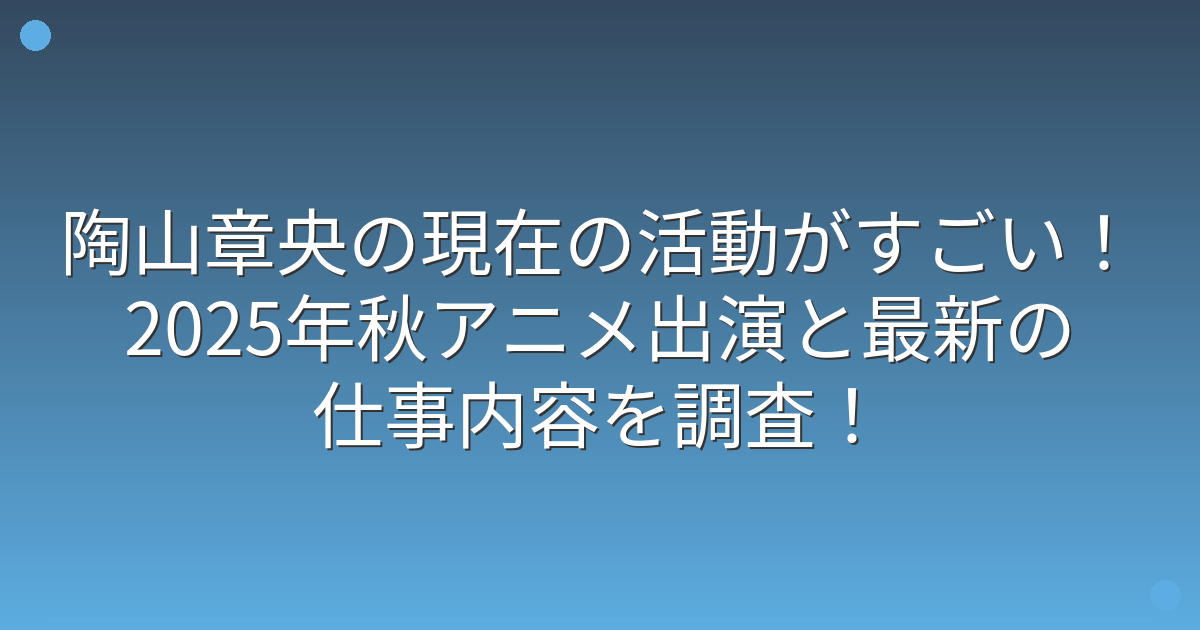 陶山章央さんは2025年秋クールの複数のアニメ作品に出演されており、現在も声優として精力的に活動されていることがわかりました。
