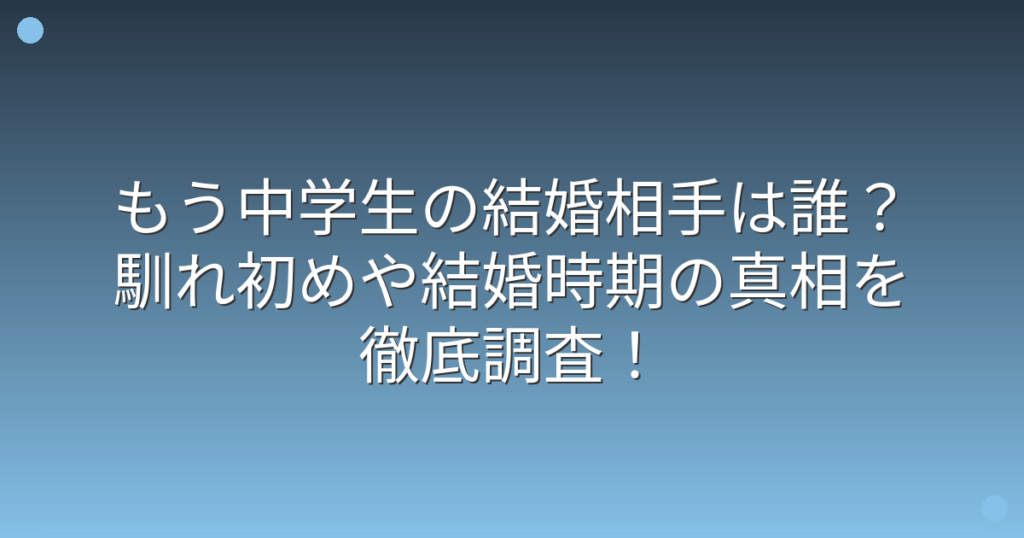 もう中学生の結婚相手は誰?馴れ初めや結婚時期の真相を徹底調査!