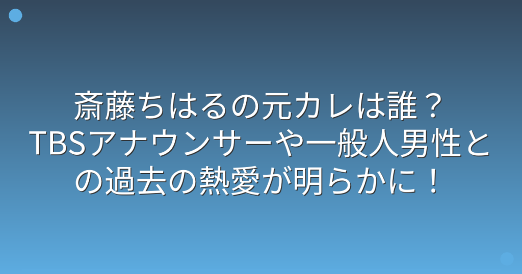 斎藤ちはるの元カレは誰?TBSアナウンサーや一般人男性との過去の熱愛が明らかに!