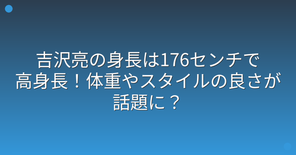 俳優として幅広い作品で活躍している吉沢亮さんですが、その抜群のスタイルが注目を集めていますね。 テレビや映画で見かけるたびに、その整った顔立ちとスマートな体型に魅了される方も多いのではないでしょうか。 そこで今回は、吉沢亮さんの身長や体重...